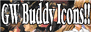 Instructions: Right-click on the icon of your choice and select "save picture as". Save it to a place where you know you can find it again. In AIM, select MY AIM/EDIT OPTIONS/EDIT PREFERENCES, select the BUDDY ICON tab. There is a window with a list of everyone on your Buddy List and below that is an image of your current Buddy Icon and some buttons. Click on the button labeled "BROWSE PC". This will open a a mini window. Find the file where you saved the image and hit SELECT. Congratulations! You have a new Gundam Wing Buddy Icon!! NOTE: to "send" the icon, just hit 'OK'. |